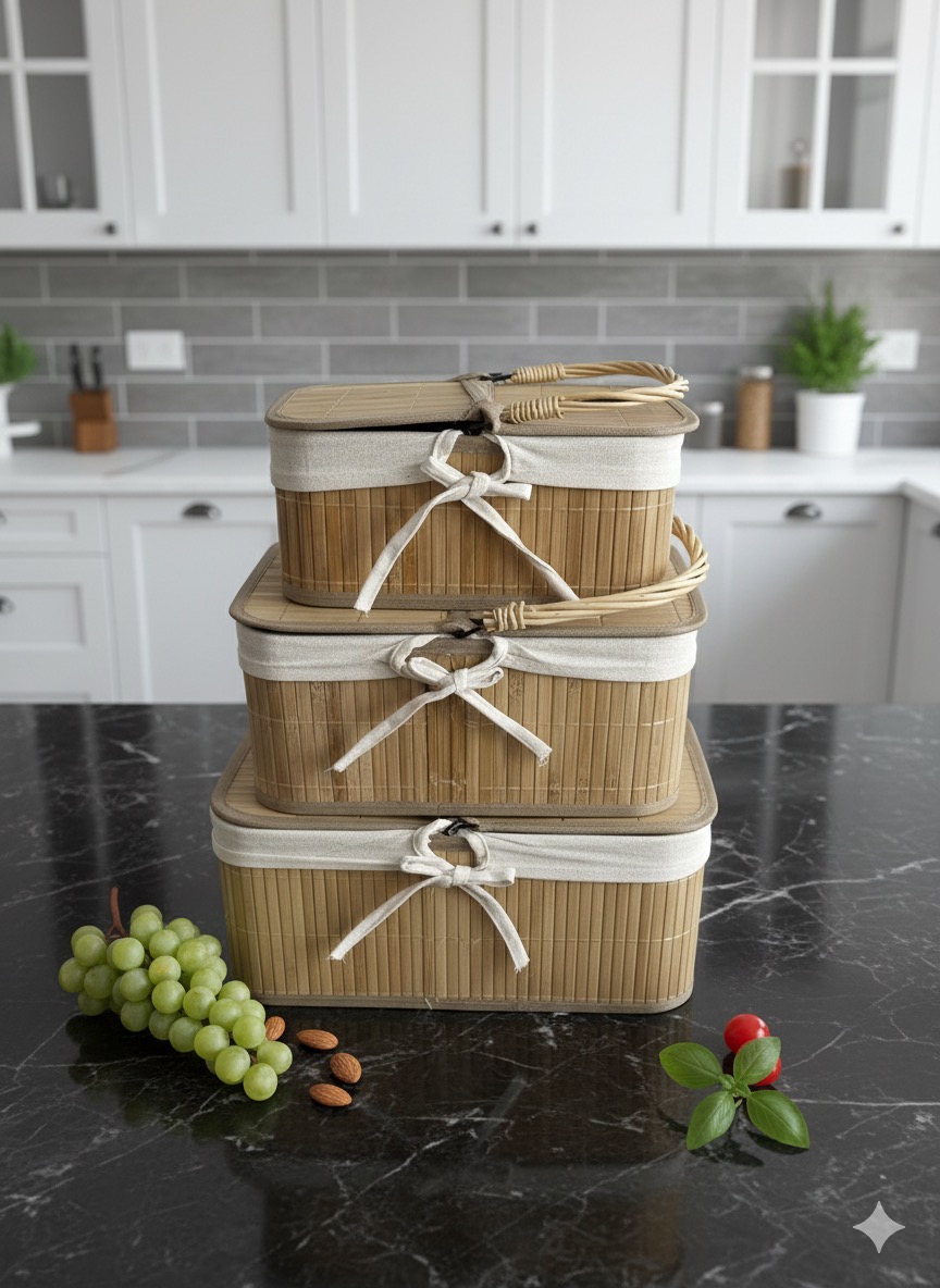 BAMBU KARE 3LÜ SEPET
